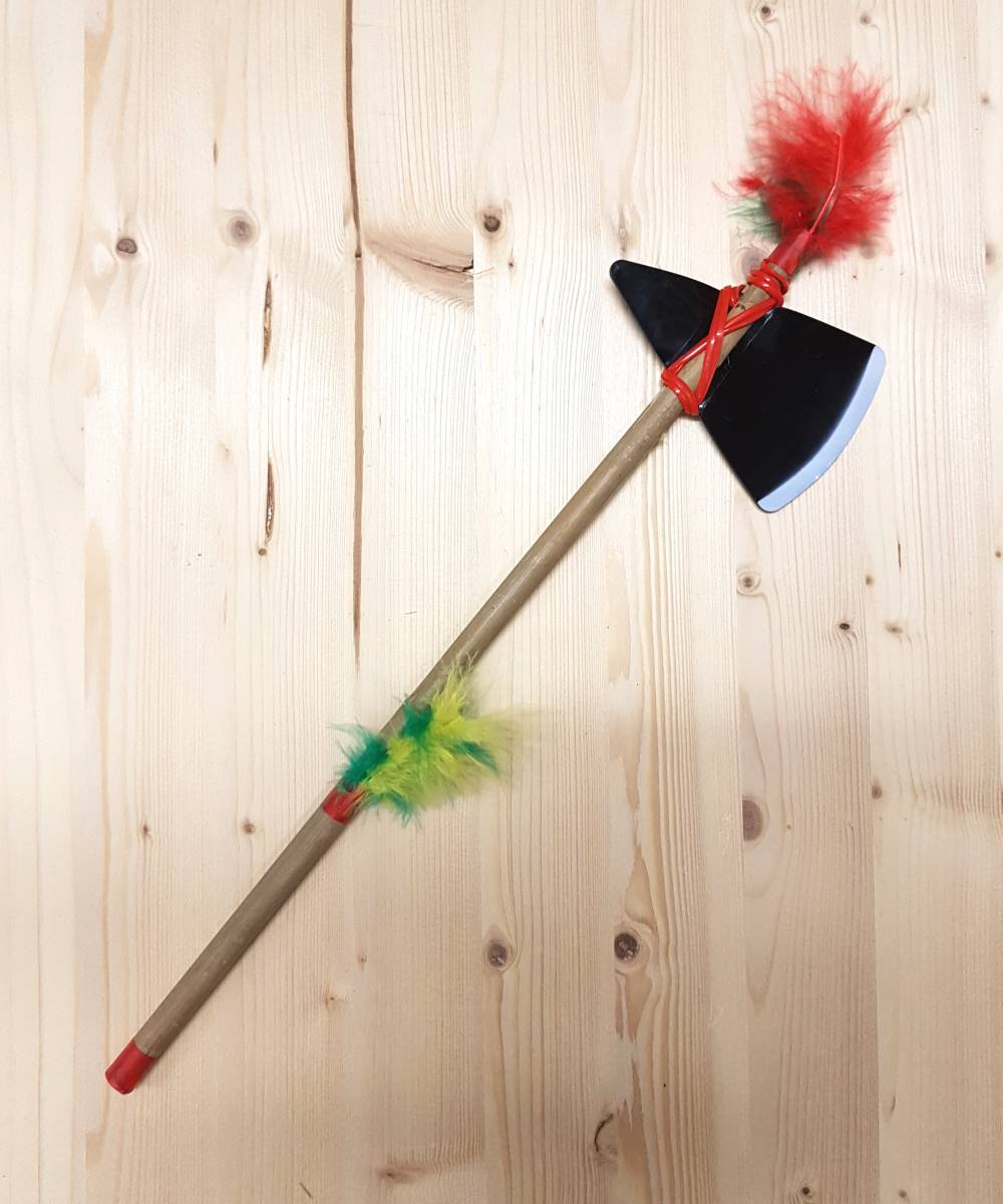 Arme d'indien d'environ 40cm. Cette arme d'indien est un tomahawk avec manche en bambou et lame souple.