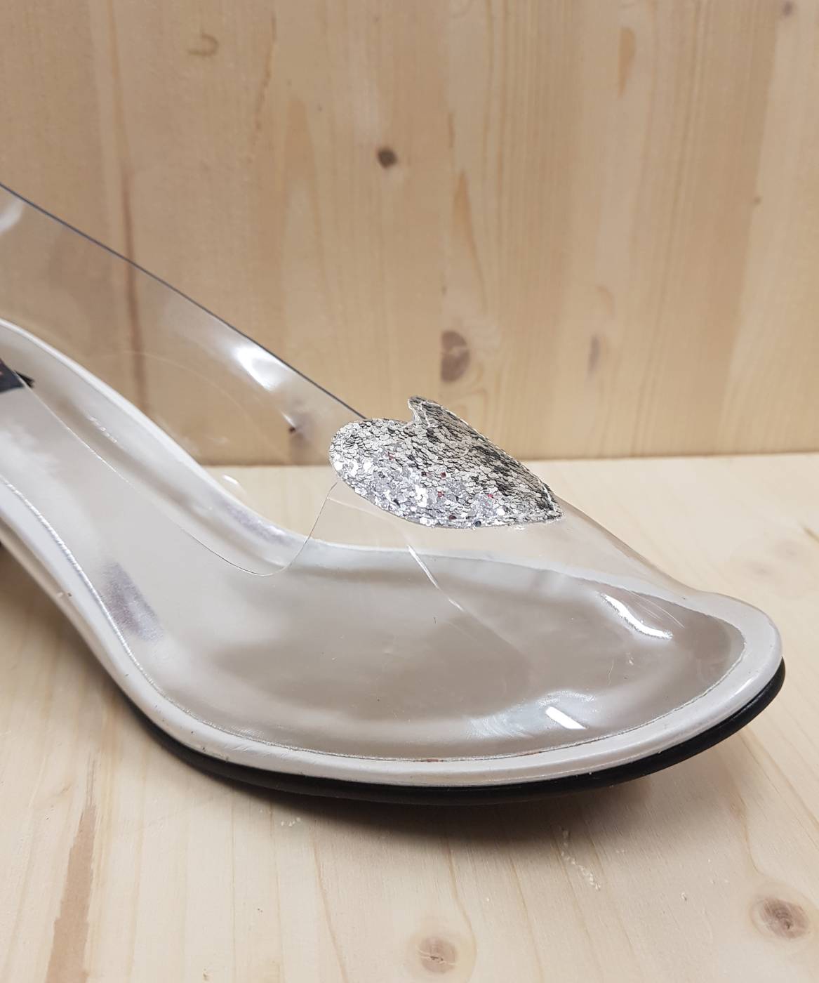Paire de chaussures aspect verre pour princesse fille. Digne d'un conte comme Cendrillon, ces souliers font rêver de nombreuses filles.Cette paire de chaussures entièrement transparentes peut également être portée par les jeunes demoiselles d'honneur lors de mariages. Le petit talon mesure 5cm.