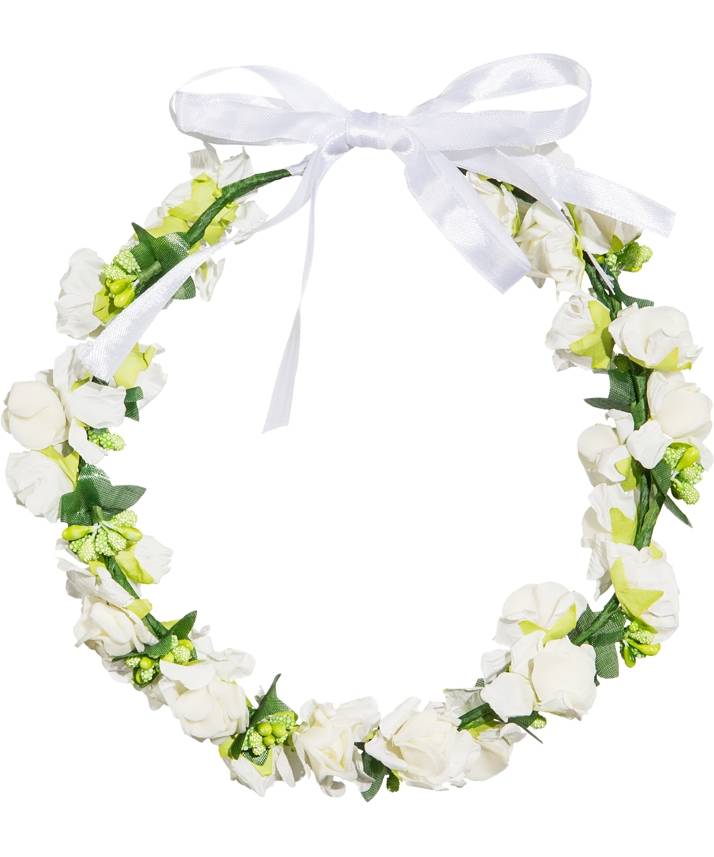 Couronne de roses blanches de belle qualité, une décoration pleine de fraîcheur avec des petites feuilles vertes et des fleurs.Idéale pour donner une note florale à un mariage ou toute autre célébration.Taille : Adulte.