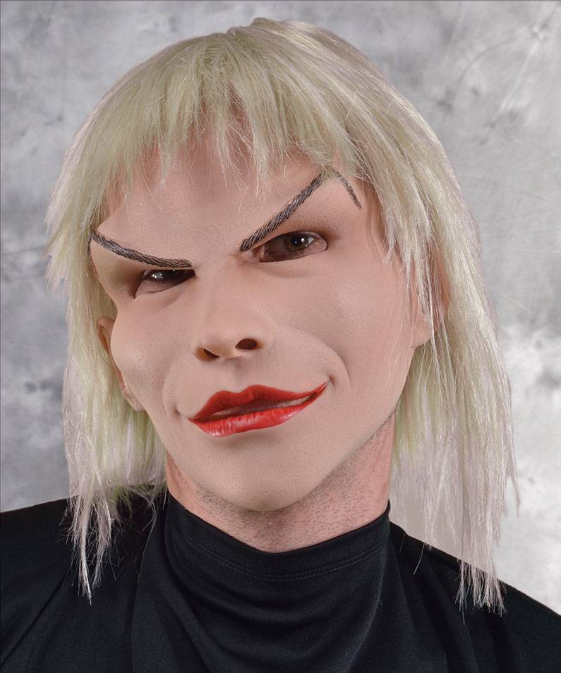 Masque de femme blonde en latex souple, très réaliste.C'est un masque à la peau lisse et à la bouche mobile et il comprend les cheveux blonds.Le rendu est spectaculaire !Fabriqué aux USA.Taille: Adulte