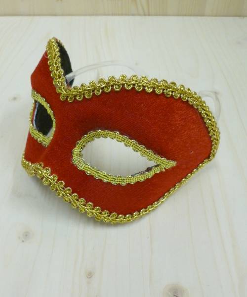 Masque en velours rouge avec branches de lunettes et galon or.Ce loup soulignera la profondeur de votre regard tout en cachant votre identité.Vous porterez ce masque comme une paire de lunettes pour le confort ou par dessus vos propres lunettes pour voir clair :)Taille : Adulte