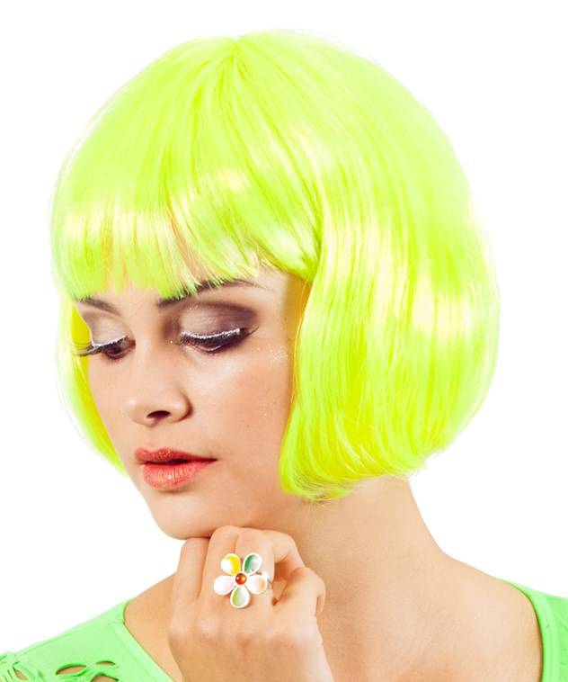 Perruque jaune néon de style Cabaret.C'est une perruque à la coupe au carré avec frange droite dont le jaune ne passera pas inaperçu.Taille : Adulte*** P R O M O T I O N ***